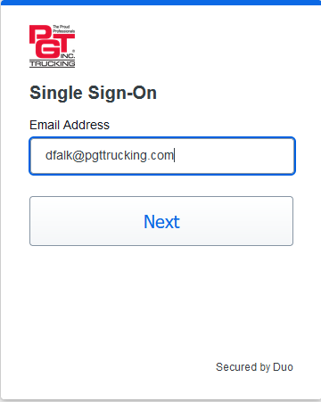 For the “Email, phone, or Skype” field, enter your PGT Email Address, then click "Next". You should get the following screen: