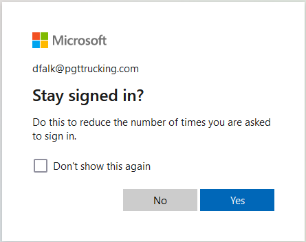 On the following screen, you will be asked if you would like to stay signed in. You can select either “Yes” or “No” here